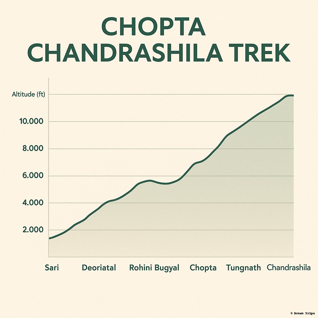The Chopta Chandrashila Trek difficulty is considered easy to moderate, suitable for beginners and families. The trek covers around 10-12 km with gradual elevation gain. Dream Trips provides expert guides who pace the trek according to your fitness level, making it comfortable and enjoyable for all.
