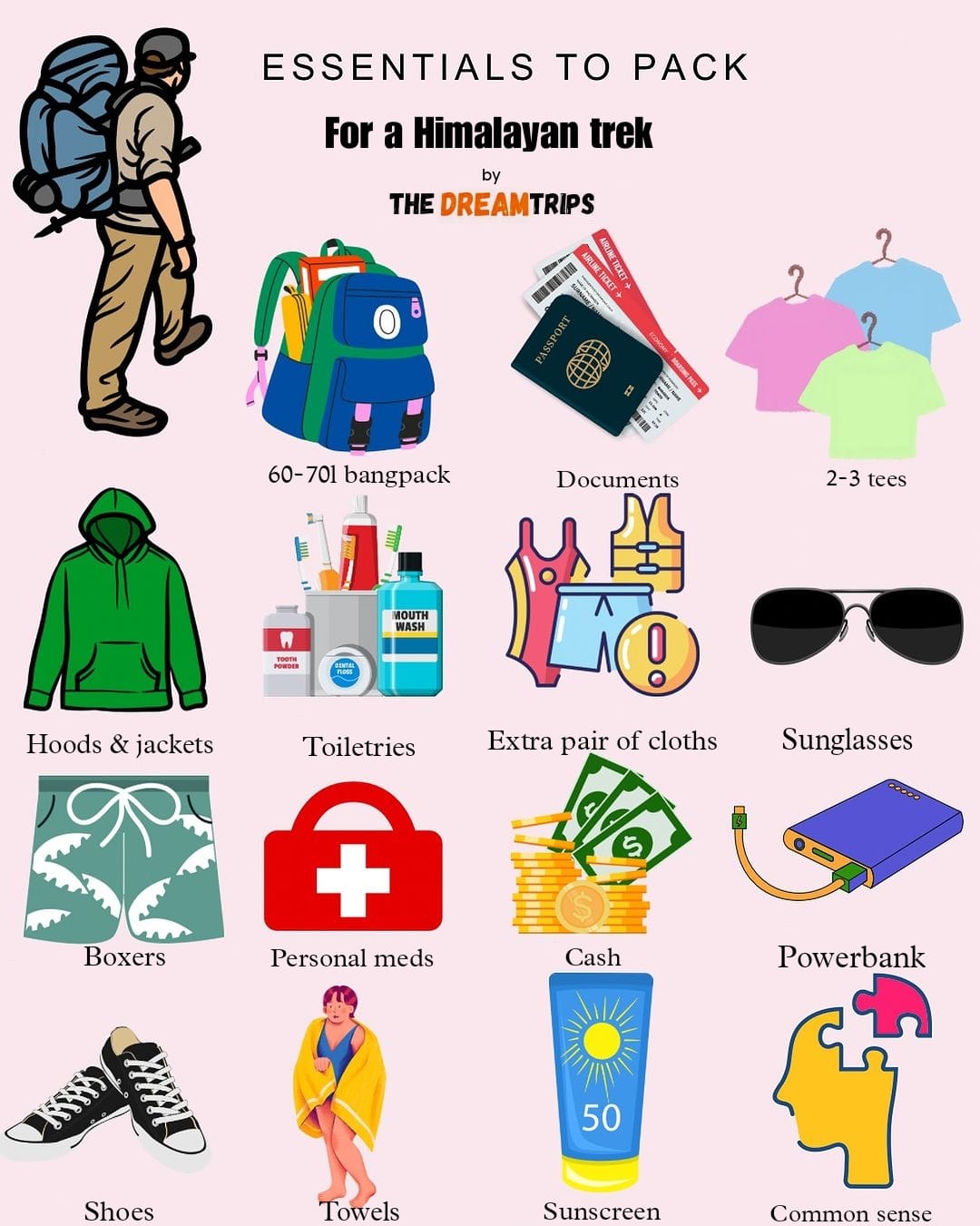 Essential Trekking Tips with The Dream Trips to trek like a pro trekker. Planning your next trek? Check out these essential trekking tips from The Dream Trips! Whether you’re a beginner or a seasoned trekker, these simple yet powerful tips will help you stay safe, pack smart, and enjoy every step of your adventure. From staying hydrated to pacing yourself, each tip is designed to make your journey smoother and more enjoyable. Save this guide and be trek-ready for your next mountain adventure! 👣