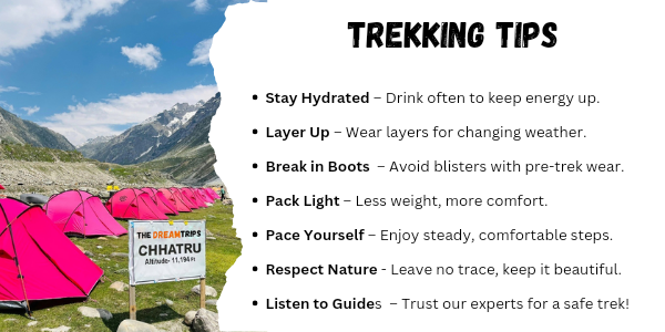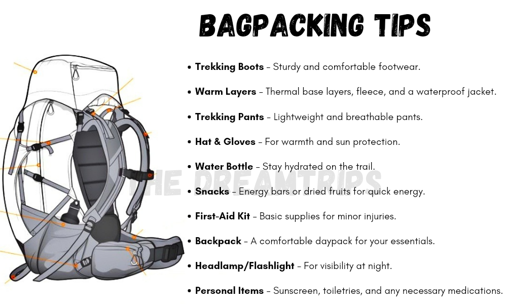 Essential Trekking Tips with The Dream Trips to trek like a pro. Are you planning your next trek? Take a look at these essential trekking tips from The Dream Trips! Whether you’re just starting out or have years of experience, these straightforward yet effective tips will help you stay safe, pack wisely, and make the most of every moment on your adventure. From keeping hydrated to managing your pace, each piece of advice is crafted to enhance your journey and make it more enjoyable. Save this guide and get ready for your next mountain adventure!
